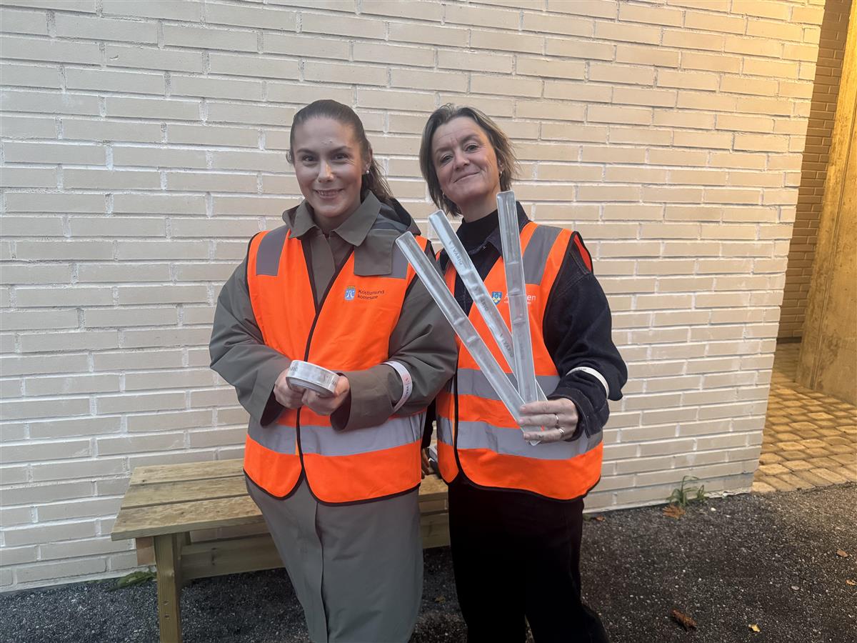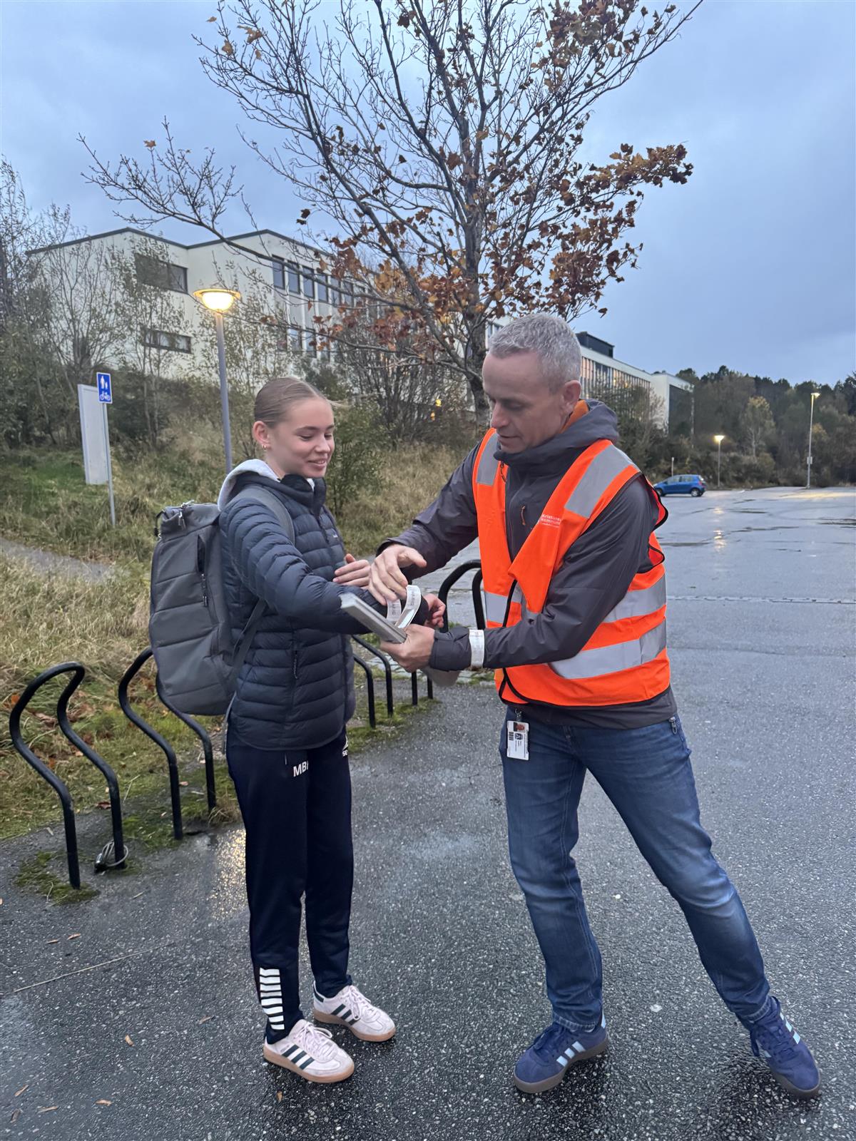 Ved oppstart av skoledagen i dag, 16.10.25, delte vi ut reflekser fra Varig forsikring. Høsten er godt i gang og det blir mørkere og mørkere dag for dag.