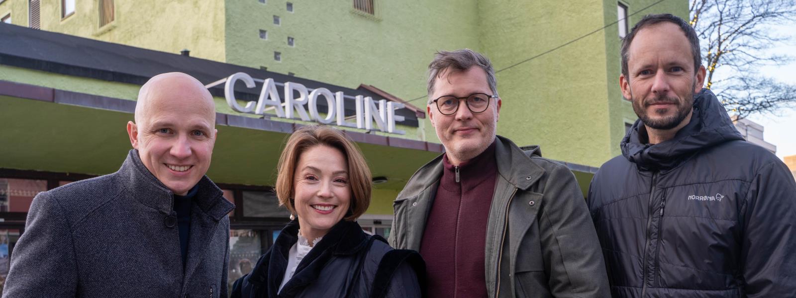 Da er det klart at Caroline kino blir driftet videre av Trondheim kino. Fra venstre: kultursjef Toril Skram, kinodirektør Trondheim kino Arild Kalkvik, kommunalsjef John Einar Skontoft og innkjøpssjef Tim Becker.