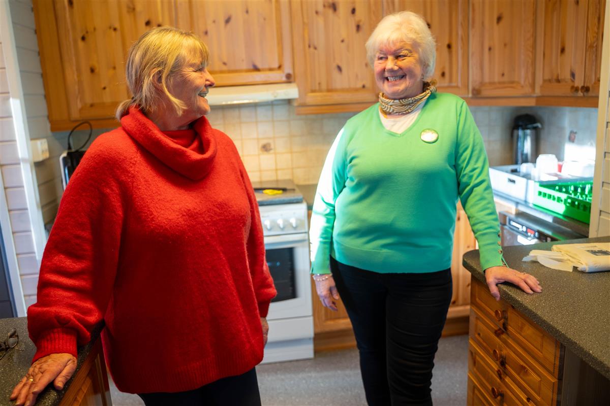 Wigdis Wollan flyttet tilbake til Kristiansund for ikke så lenge siden. Hun skryter av alle de tilbudene som finnes i byen. Her er hun sammen med Oddveig Thorkildsen som er frivillig på Møteplassen.