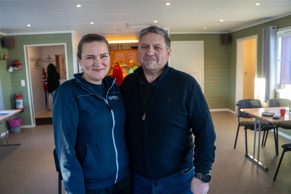 Frivilligkoordinator Pia Benedicte Smeby Rønninghaug sammen med styrelederen i Småbåtlaget Roger Solli Sæther er begge veldig fornøyd med felles glede av lokalene i Dunkarsundet.