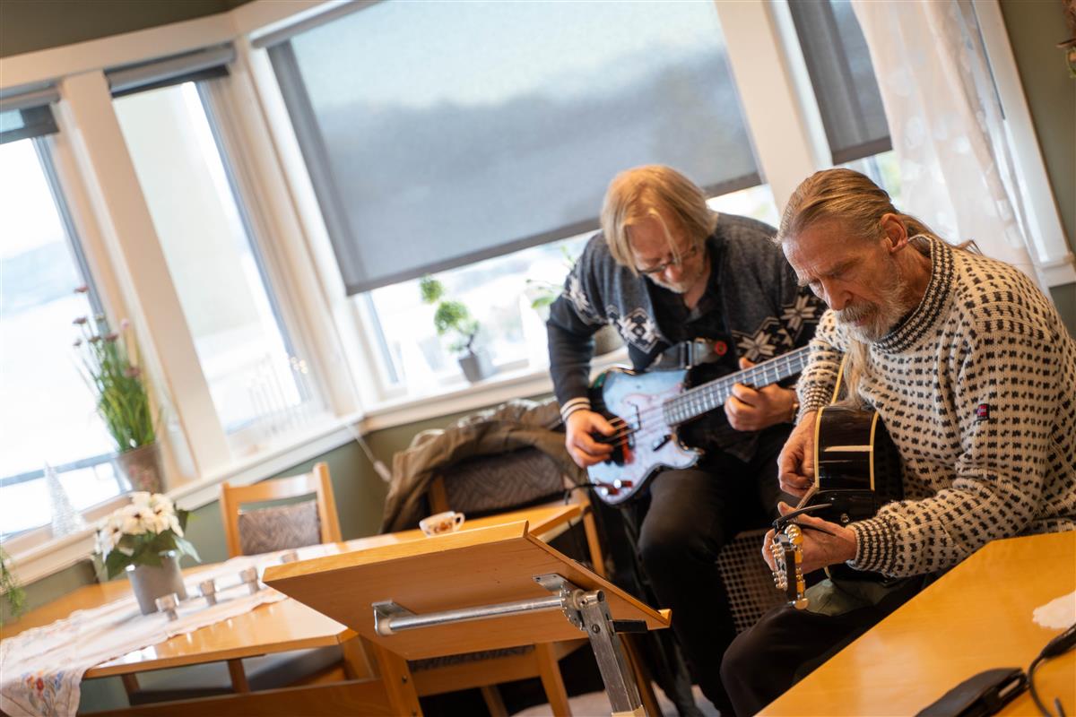 Kyrre Sætran og Øivind Elgenes bidro til julestemning på 40-årsjubileet til Frei sykehjem.