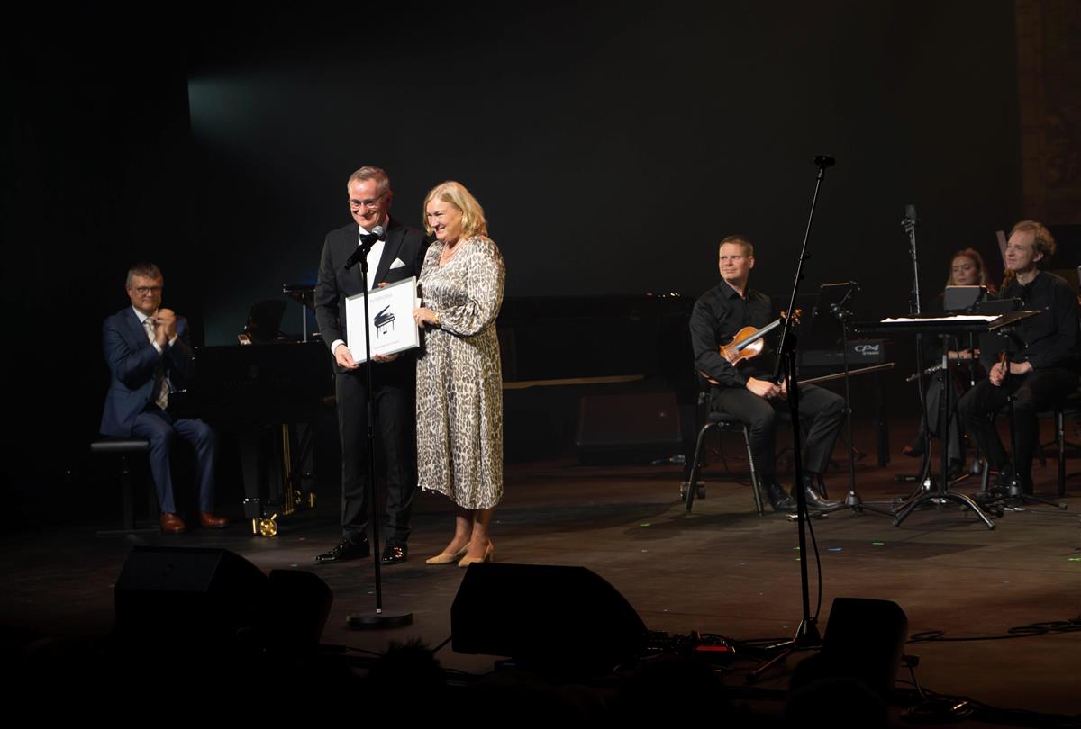 Leder for Nordmøre interkommunale politiske råd Ingrid Ovidie Rangønes kom med et elektrisk flygel i gave på vegne av alle innbyggerne på Nordmøre.