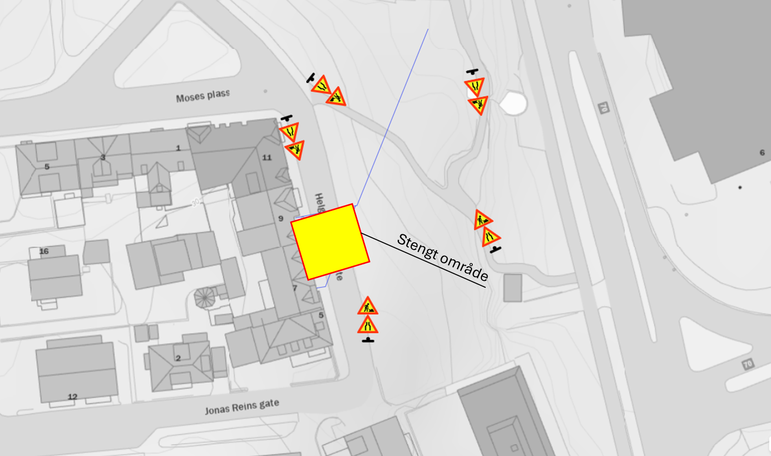 Vi ber trafikanter og beboere i området om å følge skilting og benytte alternative kjøreruter i perioden veien er stengt. Utrykningskjøretøy vil ha tilgang ved behov.