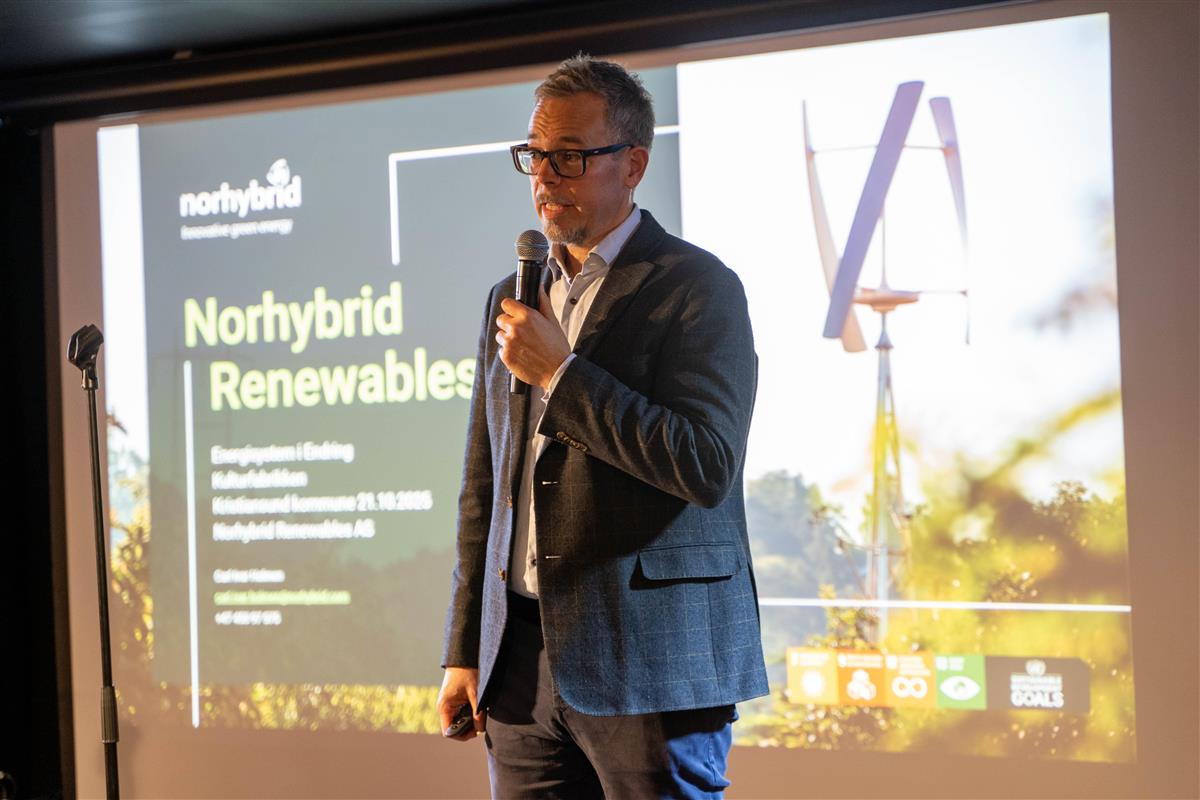 Carl Ivar Holmen fra Norhybrid Renewables presenterte løsninger for småskala vindkraft, såkalt nærvind.