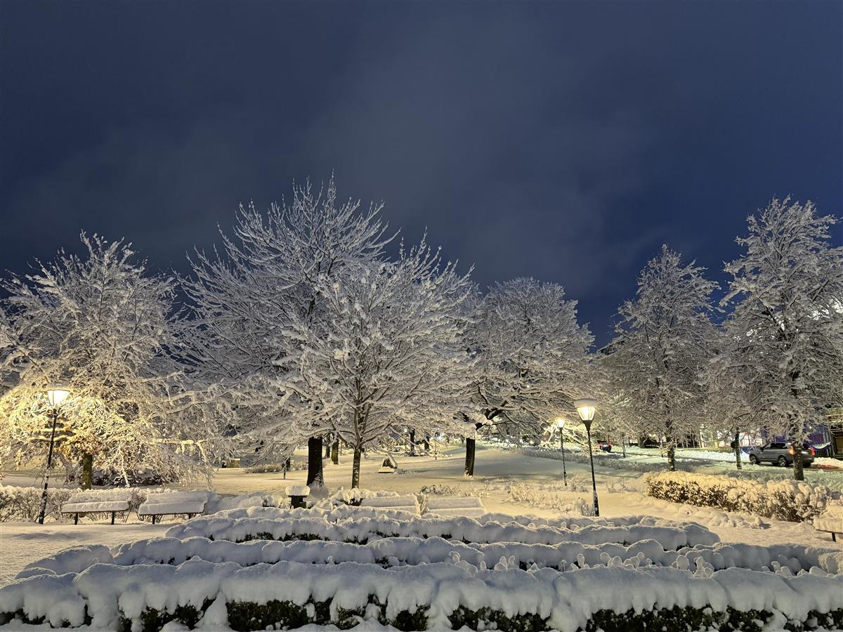 Nerparken er et område som brukes mye hele året. Her har det akkurat snødd.