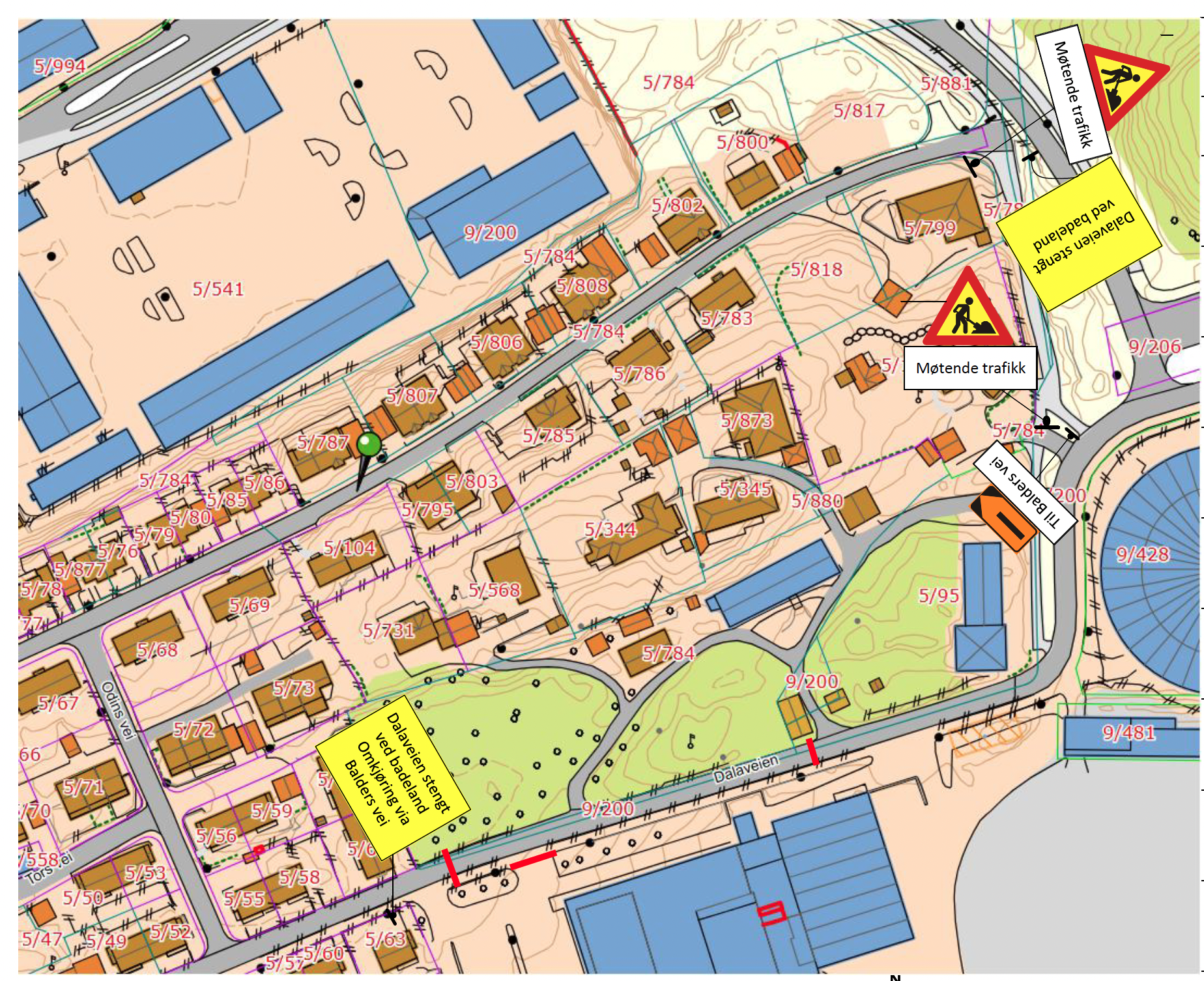Omkjøring via Balders vei.