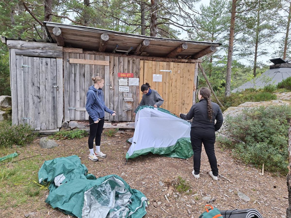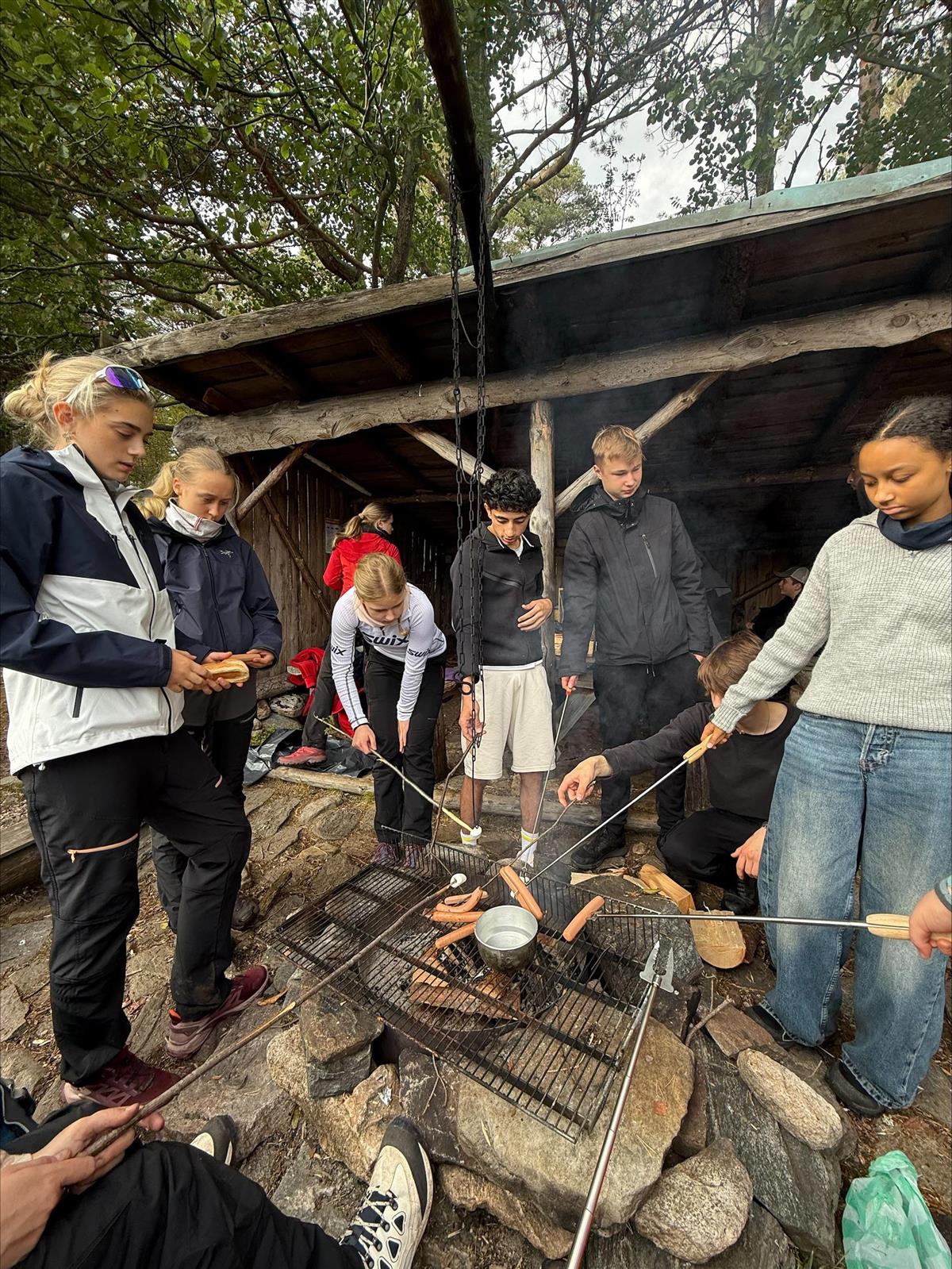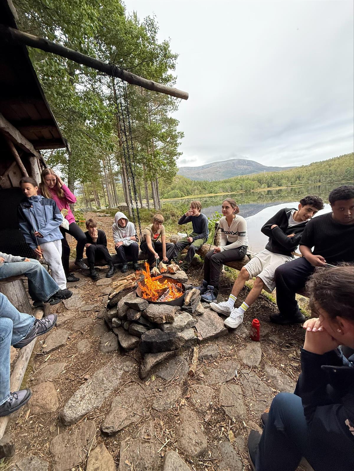 Overnattingstur til Tunga Villmarksleir10.trinn har i uke 37/38 vært på overnattingstur til Tunga Villmarksleir på Tustna. Elevene på 10. trinn tok torsdags morgen ferga fra Seivika over til Tømmervåg. Deretter gikk turen ca. 4 km på flat vei, før elevene fikk gå med tung sekk i terrenget. Overnatting i det fri er en del av kompetansemålene i faget kroppsøving. Målet med turen er å kunne reflektere over hva naturopplevelser kan bety for seg selv og andre, kjenne til farer rundt det å ferdes langs vei, oppholde seg ved og på vann og tenning av bål (trygg ferdsel), samt sporløs ferdsel.Se bilder under fra en uforglemmelig tur! Sist endret 24.09.2025 10:41