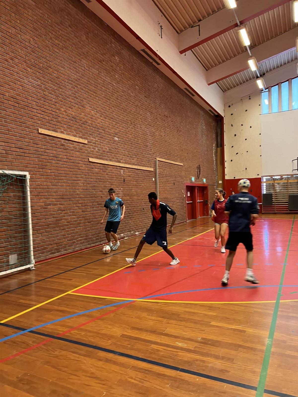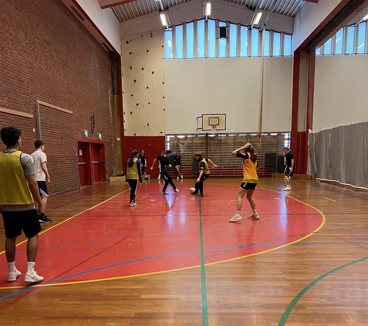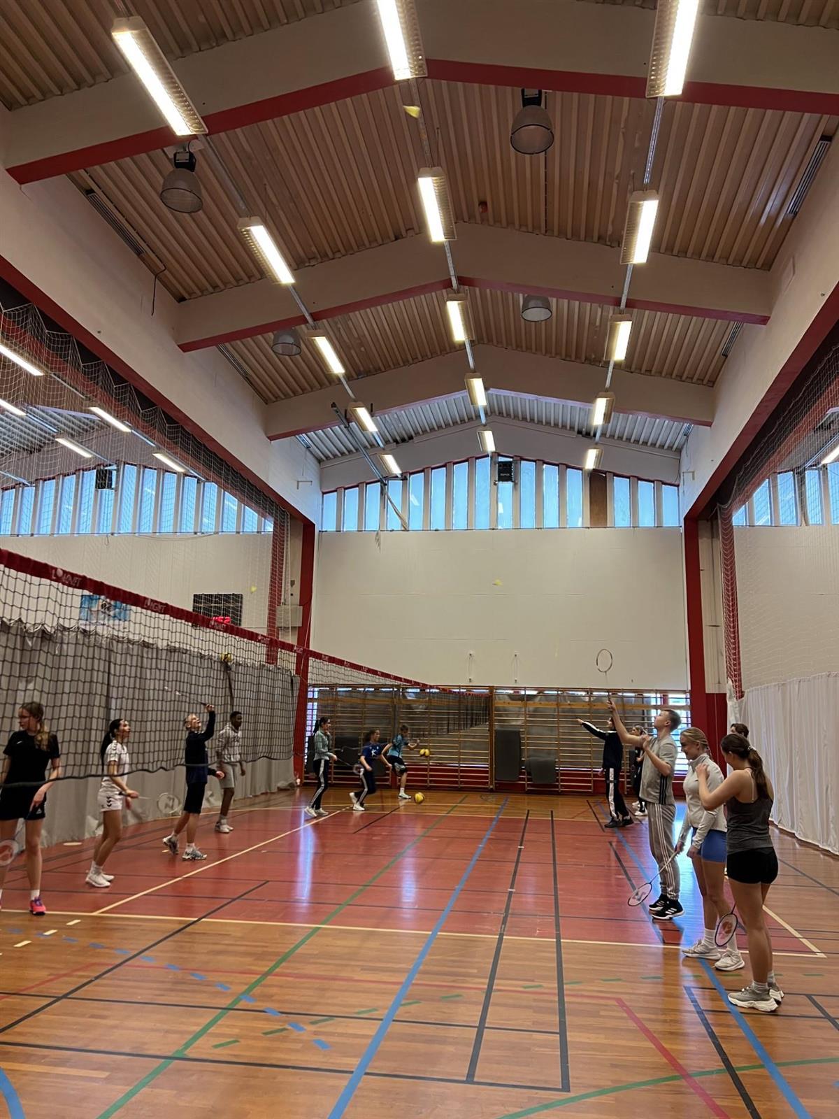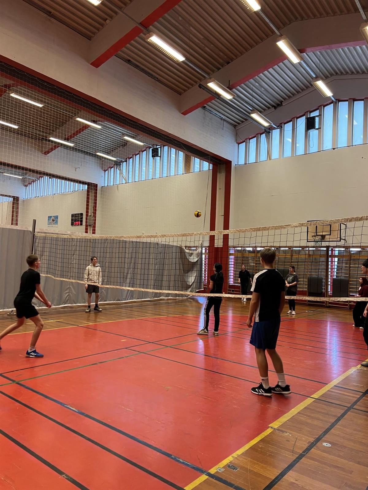 Elevene storkoste seg i Idrettshallen med volleyball, badminton, fotball og innebandy.