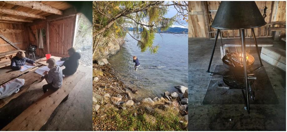 Vi har samtaler rundt bålpanna, jobber teoretisk i hefter (med sjølufta og vind i håret). Friminutt i fjæra på krabbejakt. Bruker kroppen fysisk oppe i nettene ved gapahuken. Spiller litt kort og øver på turtaking, å være gode vinnere, å være taper med samme sinn. Vi utfordrer oss selv på ting vi ikke tør og hjelper hverandre. En alternativ skoledag som skaper motivasjon og er relasjonsbyggende. Vi skal også prøve oss med robåt, men vi ønsker oss et par krabbeteiner om noen har å avse? Hvem som er med varierer fra uke til uke. Det er kontaktlærerne som melder på elever, som kan ha behov for en praktisk skoledag.