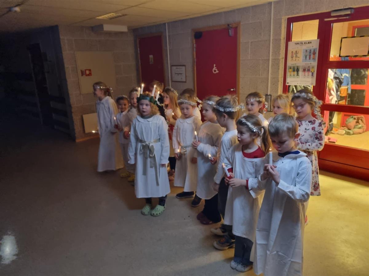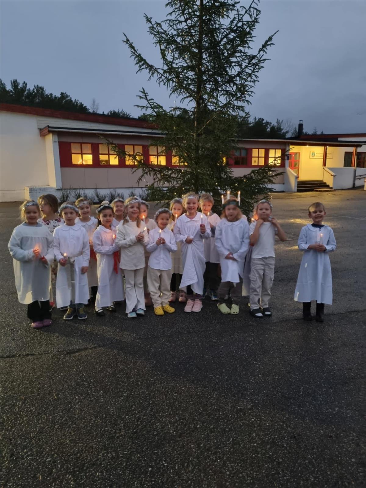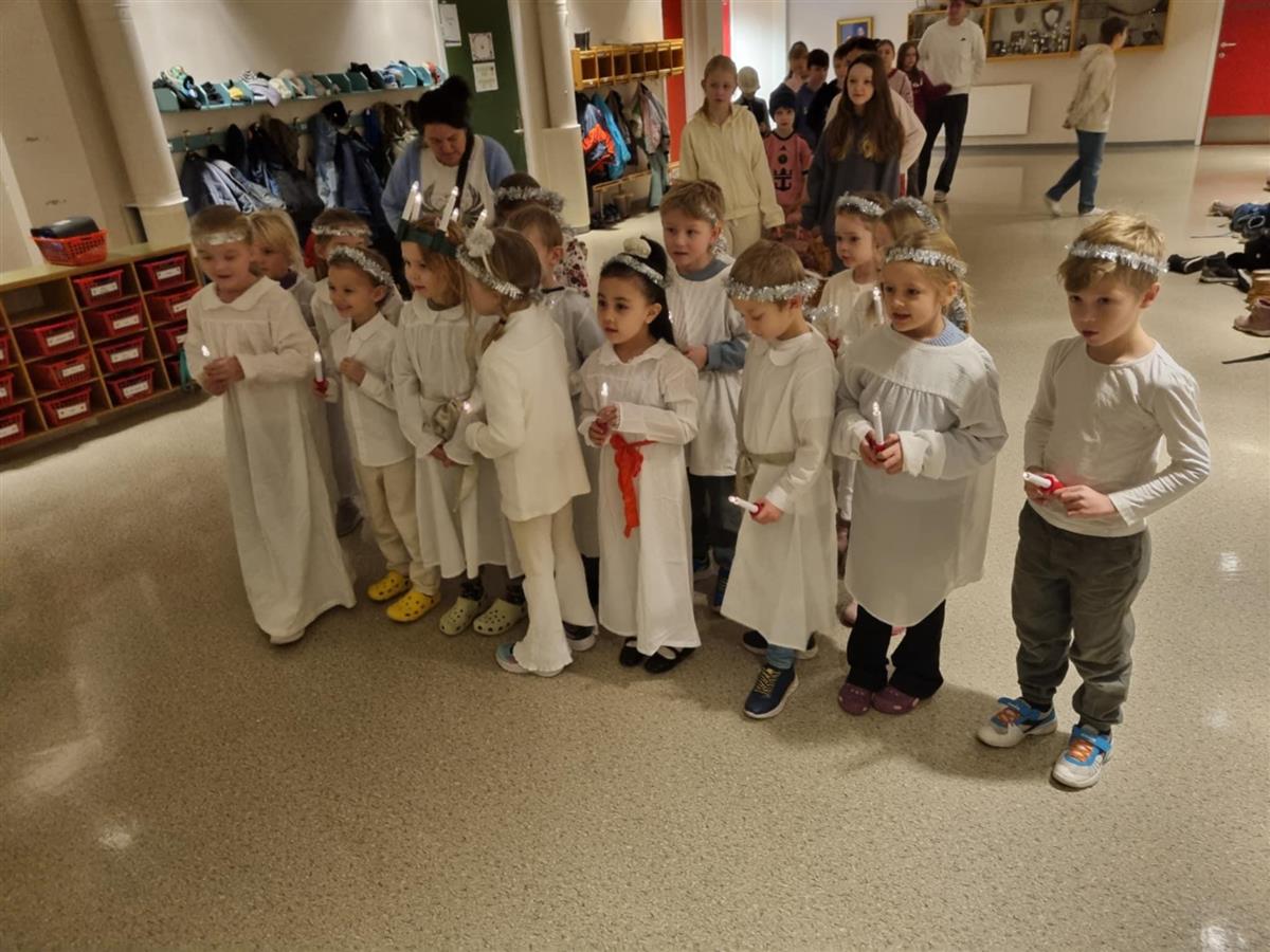 Luciatog på Rensvik skoleHer kommer noen bilder fra Rensvik skole sitt fantastiske Luciatog. Førsteklassingene besøkte hver klasse og delte ut lussekatter og sang fint. Elevene stilte seg fint opp til bilde ved slutten av runden sin. De hadde da sunget og delt ut lussekatter til hele skolen. Rensvik skole Elevene i første trinn venter tålmodig på å få gå inn til neste klasse for å synge og dele ut lussekatter med hjelp fra fadderne i 6. trinn. Rensvik skole Elevene koste seg med sang mens de ventet på å få gå inn på klasserommet til neste klasse. Rensvik skole Sist endret 12.12.2025 14:06