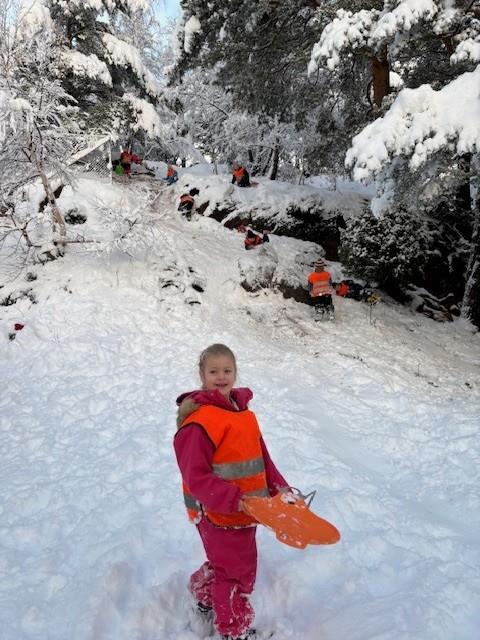 Snølek.Så kom vinteren til oss. Dette har vært populært hos våre 1. klassinger. Elevene har vært i aktivitet i snøen. Elever fra flere trinne har aket sammen i akebakken. Barn i akebakken.Barn som leker i snøen. Dagny Roksvåg Barn som aker Dagny Roksvåg Barn i lek. Sist endret 20.11.2025 14:25