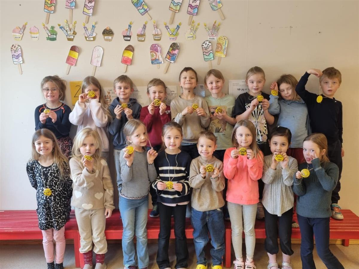 4. klasse har laget medaljer til elever på 1.-3. trinn. I dag ble medaljene høytidelig utdelt.